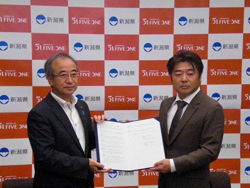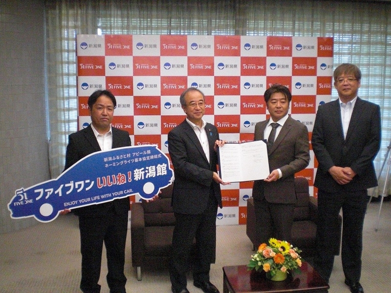 本日、新潟県と当社の間で「新潟ふるさと村アピール館」ネーミングライツの基本協定について締結いたしました。