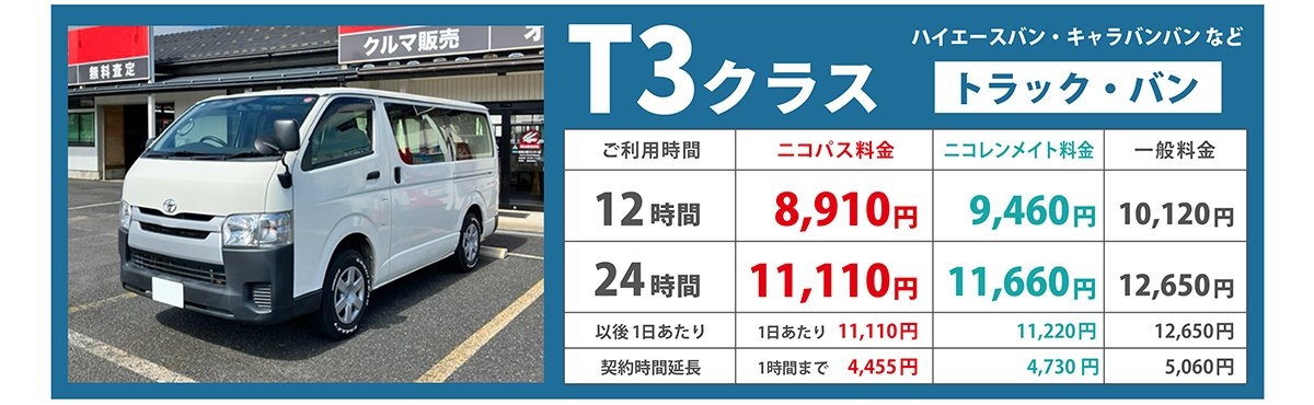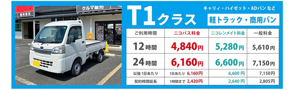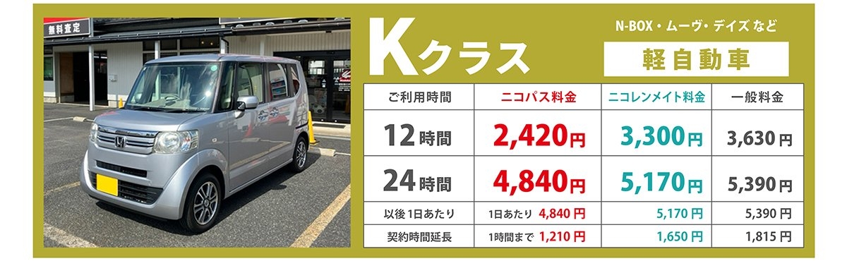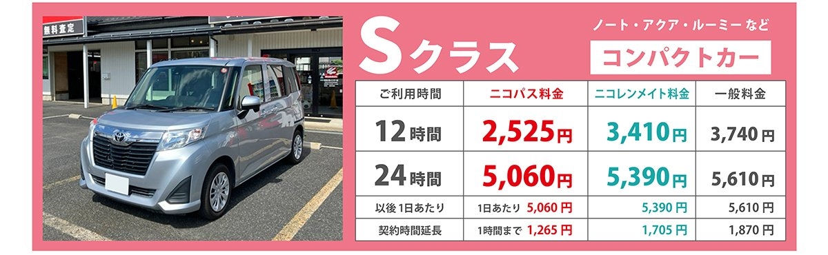 ※価格変更時など、ニコニコレンタカー公式サイトと本ページの価格が異なる場合がございます。最新の価格は、公式サイトにてご確認下さい。